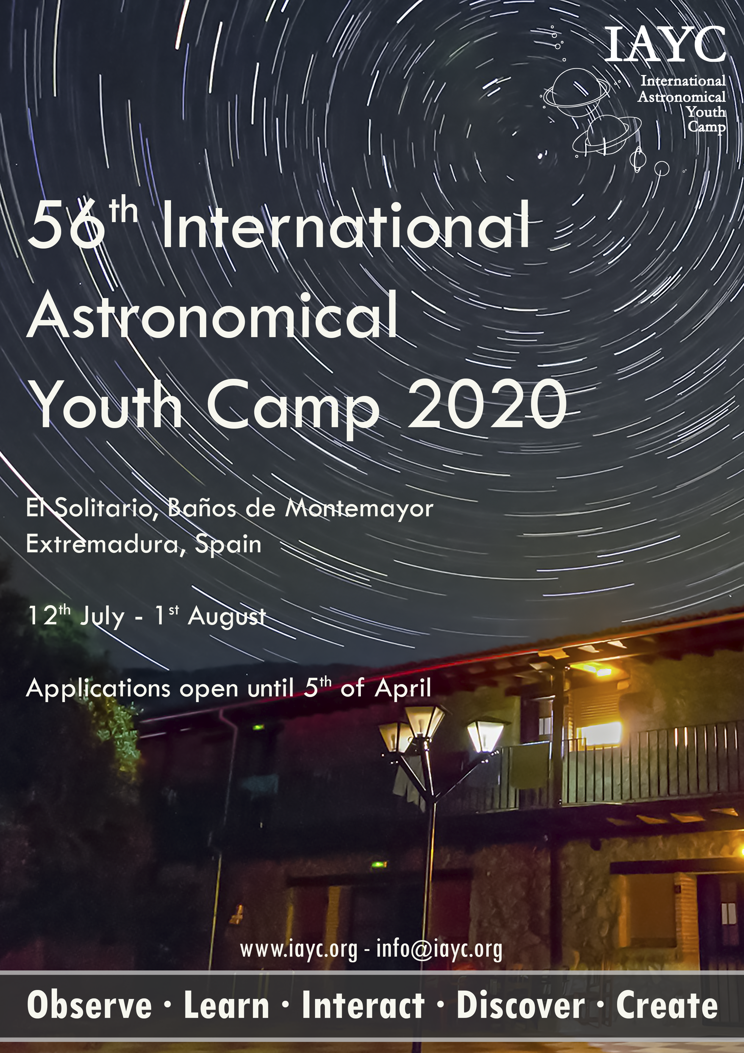 The International Astronomical Youth Camp (IAYC) is a three-week long summer camp aiming to promote knowledge of astronomy and related sciences in a unique international atmosphere. It is organised by an international team of students and young scientists, all members of IWA e.V